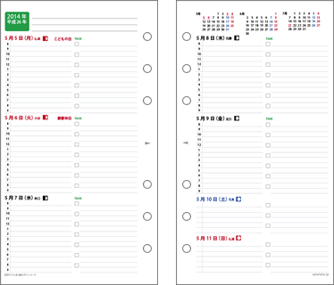 2014年1月〜2015年1月見開き1週間(2面付・表裏印刷)